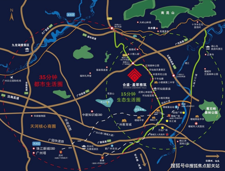 项目位于广州东部著名的度假区何仙姑景区,多个自然景区环绕:有离广州近的天然温泉、有古色古香的小楼人家、有农耕体验的冬瓜菜心万亩园,还有穿行在百年荔枝林中的全省美绿道等。