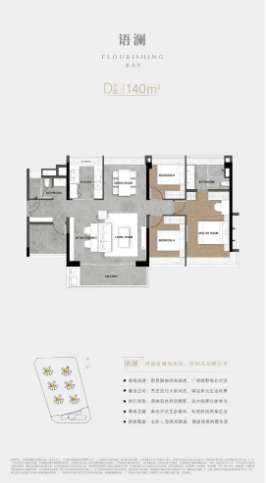 海语天悦湾目前主推1栋和4栋,在售户型面积涵盖约80-141平米的三至四房,单价约为2.3万至2.7万元。特别是80平米的小户型产品,是金融岛上较为少见的南向江景小户型,具有三开间朝南、9米采光面等特点,非常适合单身人士或新婚夫妇。而123平米的户型则是南向景观双套间,配有南北对流主卧套房,适合三代同堂的家庭居住。