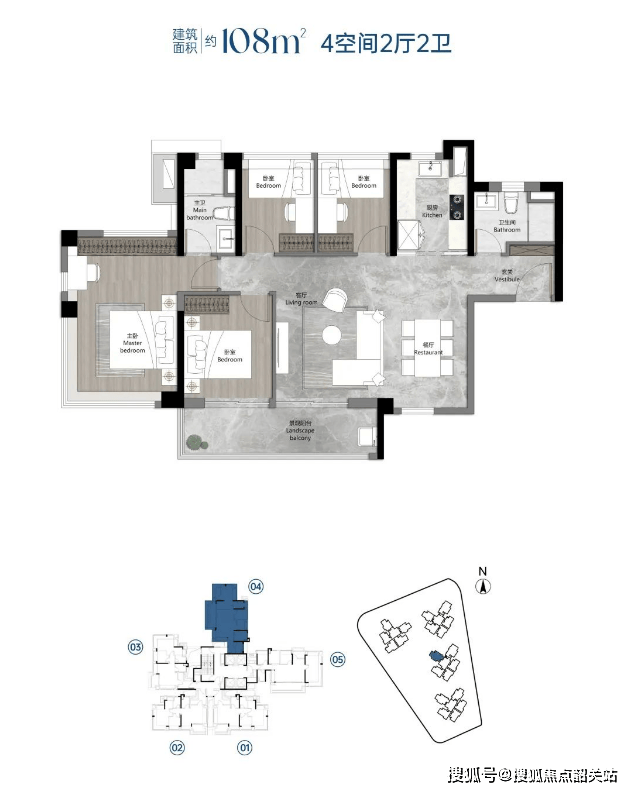 108㎡横厅四房:5.95米开间客餐厅,5.8米观景阳台,可打通次卧形成超大LDKB一体化空间,轻松容纳8-10人家庭聚会;