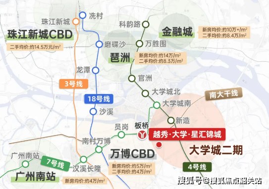 交通极为便捷,距离地铁4号线新造站直线距离仅约700米。3站可到达万博、4站到达琶洲、5站到达金融城。项目门口直通南大干线,还有金光东隧道和新化快速路连接琶洲和珠江新城。商业方面,自带约8000㎡商业街,周边还有大学城gogo新天地、广大商业中心等。医疗资源也很丰富,周边3km内有广东省妇幼保健院、番禺区第六人民医院等。更多生活配套情况欢迎拨打400-078-0012(售楼处已认证)咨询。