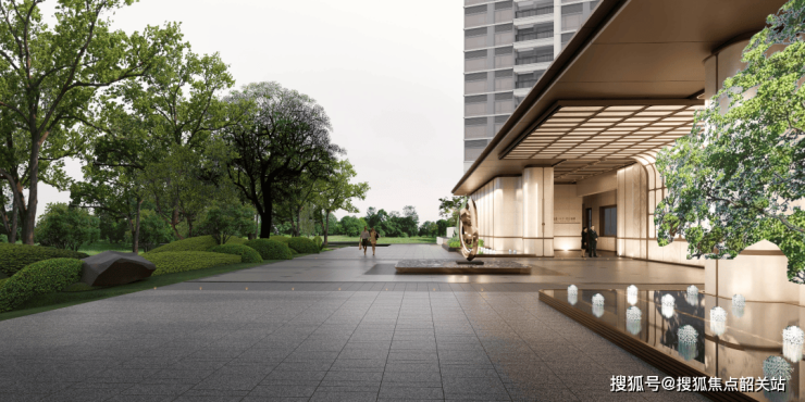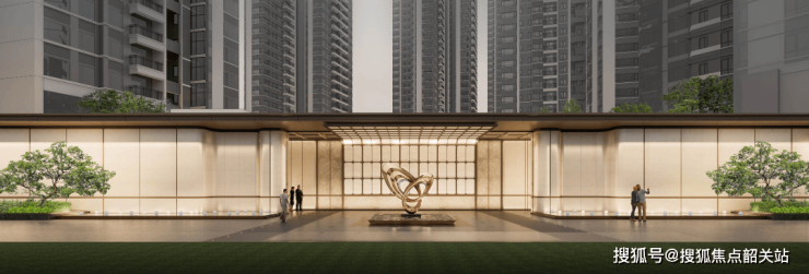 走进社区入口,入户大堂选用了石材幕墙系统搭配铝板装饰雨棚,构成了近人尺度的第一视觉印象。这种外立面设计并非单纯追求视觉上的宏大,而是基于“悦己主义”的极简美学理念,试图在酒店式归家体验与日常居住功能之间找到平衡点。在高密度的一线城市环境中,项目通过矩阵式的形体语言处理,既保证了建筑外观的现代感,又兼顾了极致的采光与通风需求,让建筑本身成为居住者生活品质的物理载体。