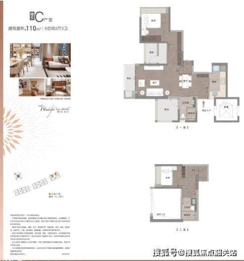建面约 110㎡五房两厅两卫 复式户型墅级体验
