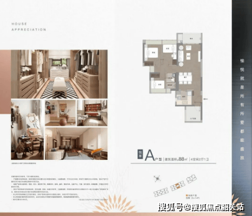 建面约 88㎡四房两厅一卫 刚需优选高实用率