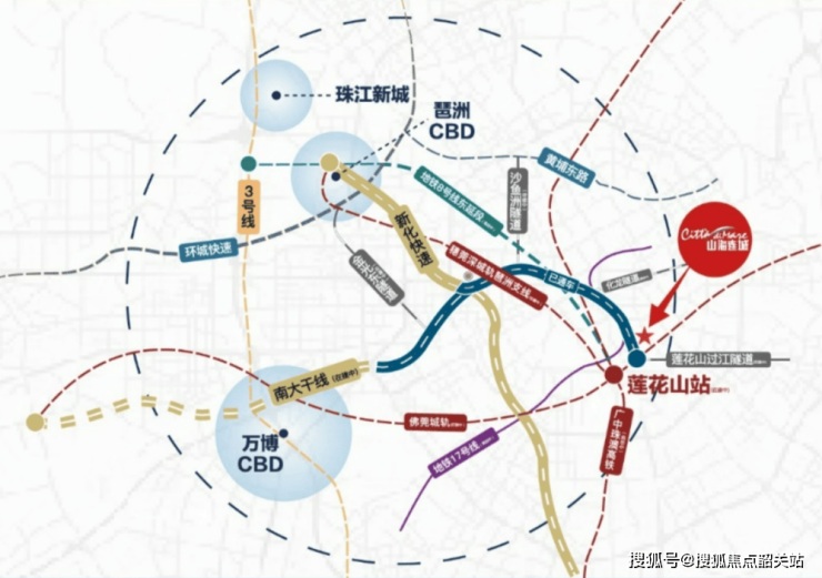 凯德·山海连城所处的莲花湾片区,是《广州市十四五规划》中明确提出重点发展的战略性区域,定位为广深港、广珠澳科技创新走廊的重要节点,未来将承接大量高端产业与人才导入。项目位于番禺东部,紧邻狮子洋,坐拥一线滨海景观资源,是广州主城区范围内极为稀缺的临海居住板块。交通方面优势显著,新化快速已通车,实现约20分钟直达琶洲,南大干线全线贯通后串联广州南站、长隆、万博、大学城等核心功能区,形成高效通勤网络。距离项目约2公里的莲花站枢纽,未来可通过8号线东延段3站抵达琶洲,佛莞城际3站达长隆、4站至广州南站,实现轨道交通无缝衔接。随着区域路网不断完善与产业加速落地,莲花湾正从传统居住区升级为集科技、生态、人文于一体的现代化新城,凯德·山海连城作为片区内体量最大、配套最全的标杆项目,享有先发优势与长期增值潜力。