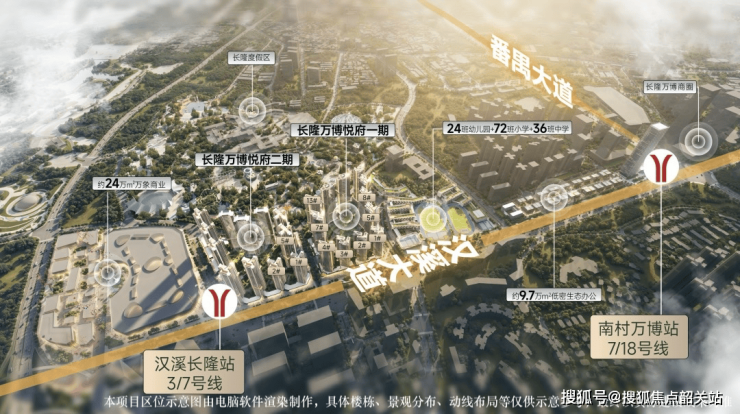 项目紧邻地铁3号线、7号线汉溪长隆站,步行仅需8分钟左右即可到达。距离18号线南村万博站也只有1.2公里的距离,无论是自驾还是乘坐地铁前往珠江新城、金融城或是琶洲都非常方便。比如,驾车前往珠江新城大约需要38分钟,而选择地铁出行则只需32分钟,大大缩短了通勤时间。