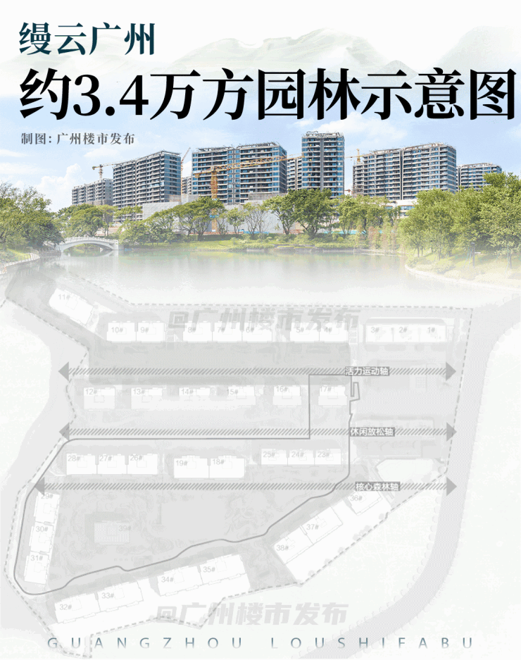 项目整体采用低密度开发模式,楼间距宽阔,确保每户均有良好采光与视野。所有楼栋均为南北对流设计,通风性能优越,契合广州湿热气候下的居住需求。