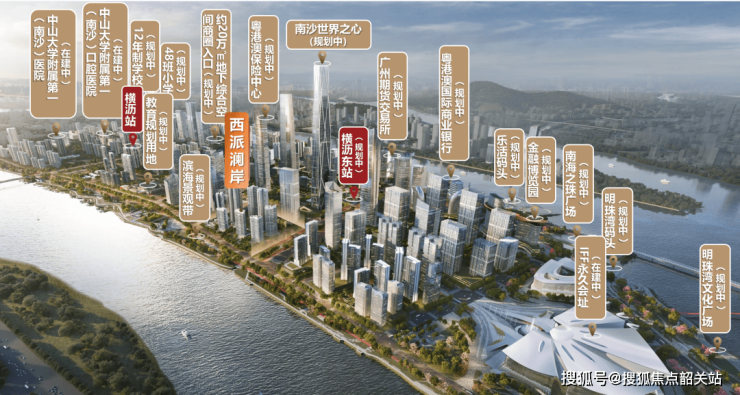 商业配套方面,西派澜岸所在的横沥岛属于新兴CBD,目前商业仍在建设阶段,但规划级别较高。根据南沙官方规划,横沥岛将引入国际金融、商务办公及高端商业,未来商业体量预计达到百万平方米级别。