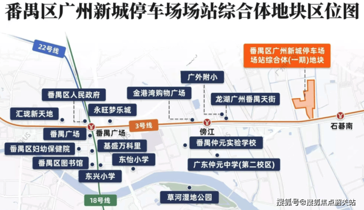 项目距离 3 号线石碁南站约 500 米,乘坐地铁 2 站可到达番禺广场。