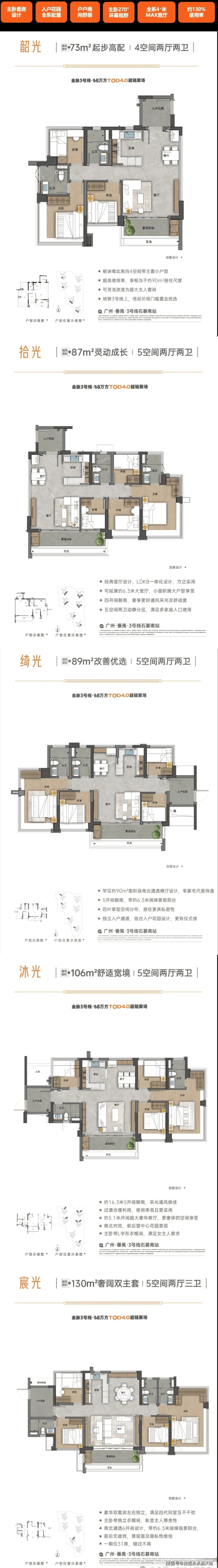 建面约 73 - 130㎡全南向 4/5 空间两厅两卫