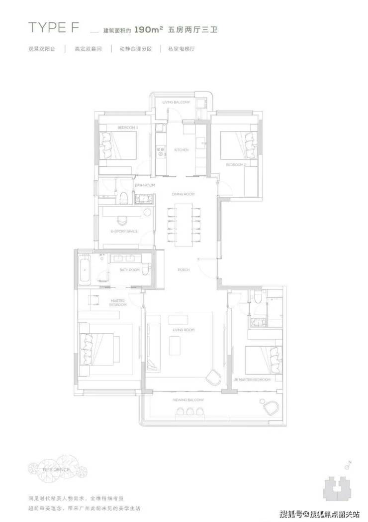 190产品为五房两厅三卫产品,充满了对云端人群生活的独特见解,南向双主卧,中西厨布局,打造纵向超长LDK一体化空间,产品所体现的不只是居住产品,更是特属客群所拥有的生活方式。
