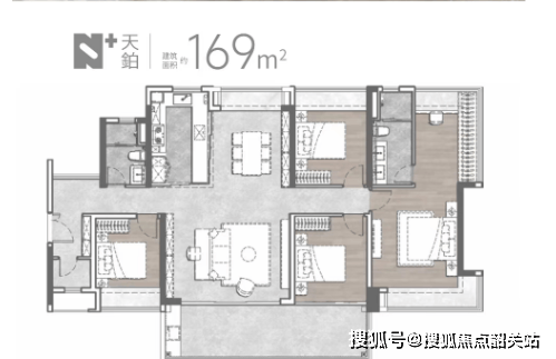 169㎡四房实测套内面积约 169㎡,四开间朝南(采光面达 15 米),南北双阳台(景观阳台 8 米、生活阳台 4 米),270° 景观飘窗覆盖主卧与两个次卧,部分高层房源可俯瞰港科大(广州)校园景观;楼栋采用 “一字型错位排布”,实测楼间距最小 40 米,最大 70 米,避免遮挡,90% 房源可享无遮挡视野;梯户比为 2 梯 3 户 / 2 梯 4 户,实测电梯等待时间平均不超过 2.5 分钟,优于同密度改善盘(平均等待 4 分钟)。