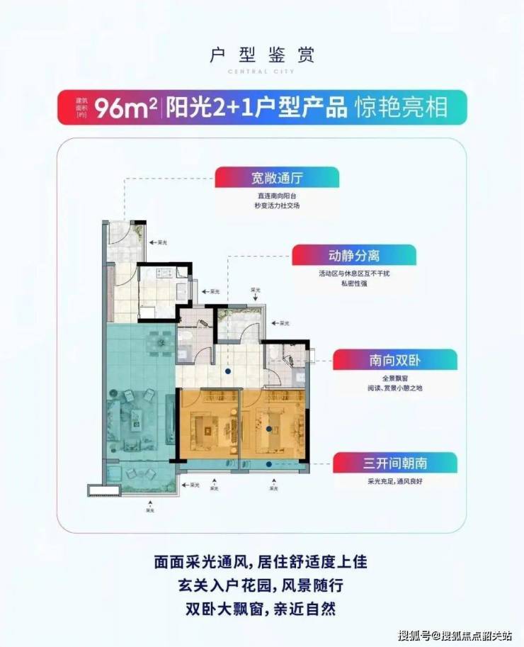 产品:建面约85-140㎡二至四房,全南向户型,得房率超85%;