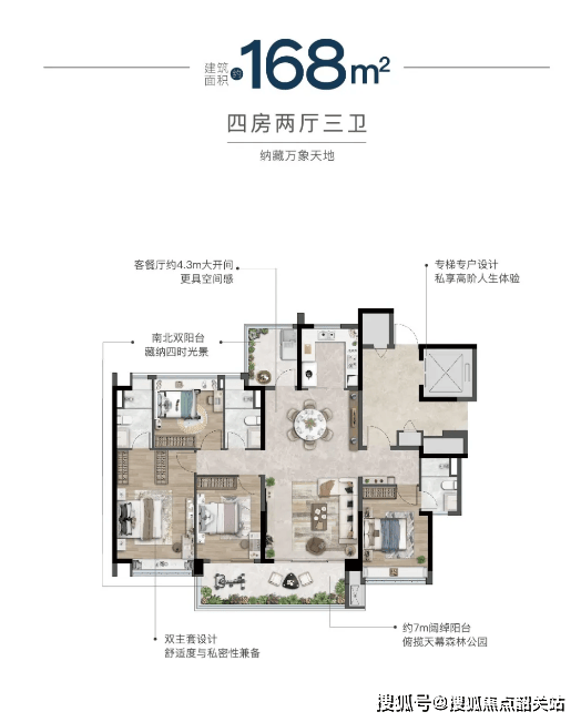 七、户型与社区设施:全四房改善户型,200 米楼间距 + 豪宅级配置