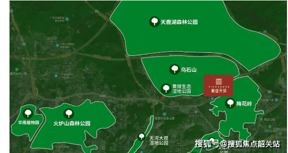 生态环境是项目的核心竞争力之一。项目临近约 880 公顷的天鹿湖森林公园,周边还有天河湿地公园、黄陂生态湿地公园、科学城体育公园、华南植物园、火炉山森林公园等 6 大公园环绕,生态氧离子含量高,日常休闲与自然接触轻松实现。社区内部打造约 2 万㎡中央园林(相当于 2.8 个国际标准足球场),规划健身园、健康跑道、儿童乐园等八大全龄活动空间,业主下楼即可享受 “推窗见绿、出门入园” 的鲜氧生活,宜居体验拉满。
