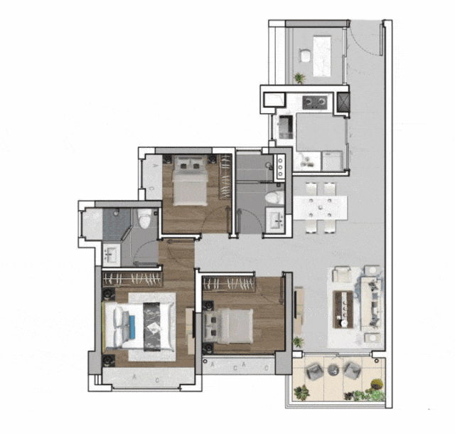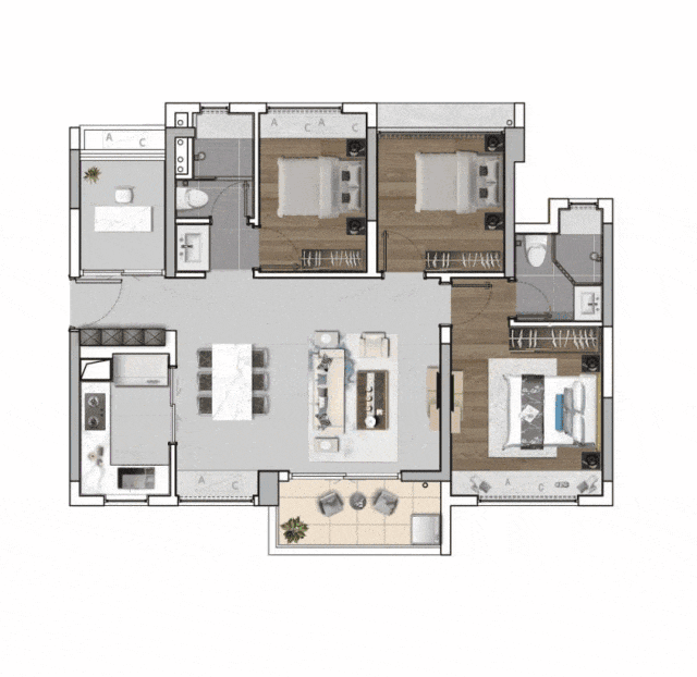 小户型都做到五脏俱全,大三房、四房户型就更加让人惊叹了。