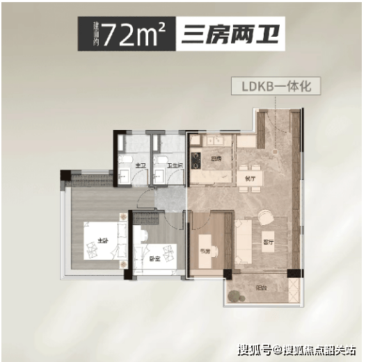 具体在售户型面积如下:建面约72㎡三房两卫,是天河最小面积的双卫浴三房,南向四开间,带入户花园,空间和功能相当于传统90㎡户型,赠送空间大,适合刚需上车人群,预算300多万即可入手,轻松扎根天河。