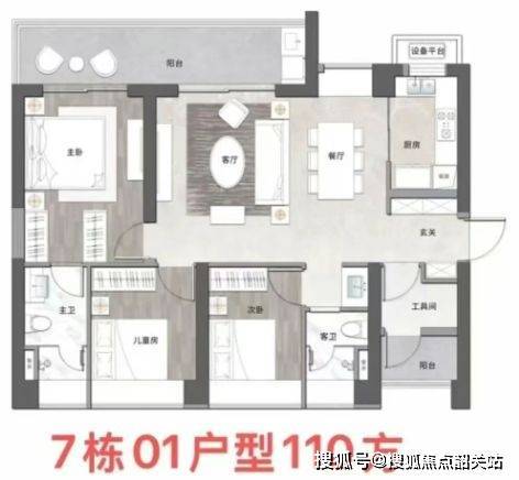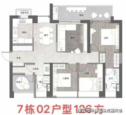 116㎡三房:布局方正,空间高效,卧室及客厅南北通透
