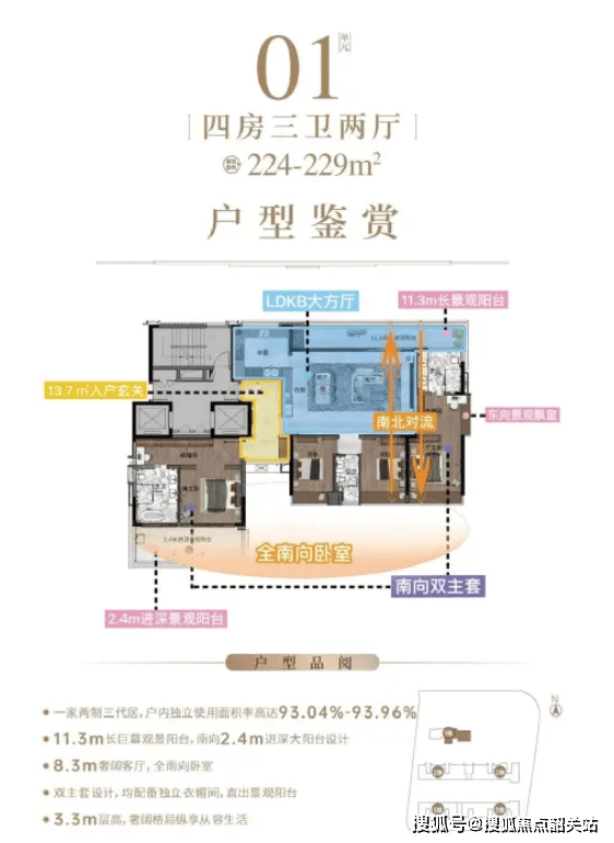 新城市领院全盘只有一栋小高层(16层)和28栋叠院,其中小高层采用2梯2户板式设计,层高为3.3米。户型最小面积为130㎡三房,最大面积为224-229㎡四房,共两种户型。所有建筑均已封顶,属于准现楼,能够较快交房。此外,每户还赠送独立产权车位及负一层独立储物房的永久使用权,提升了居住体验。