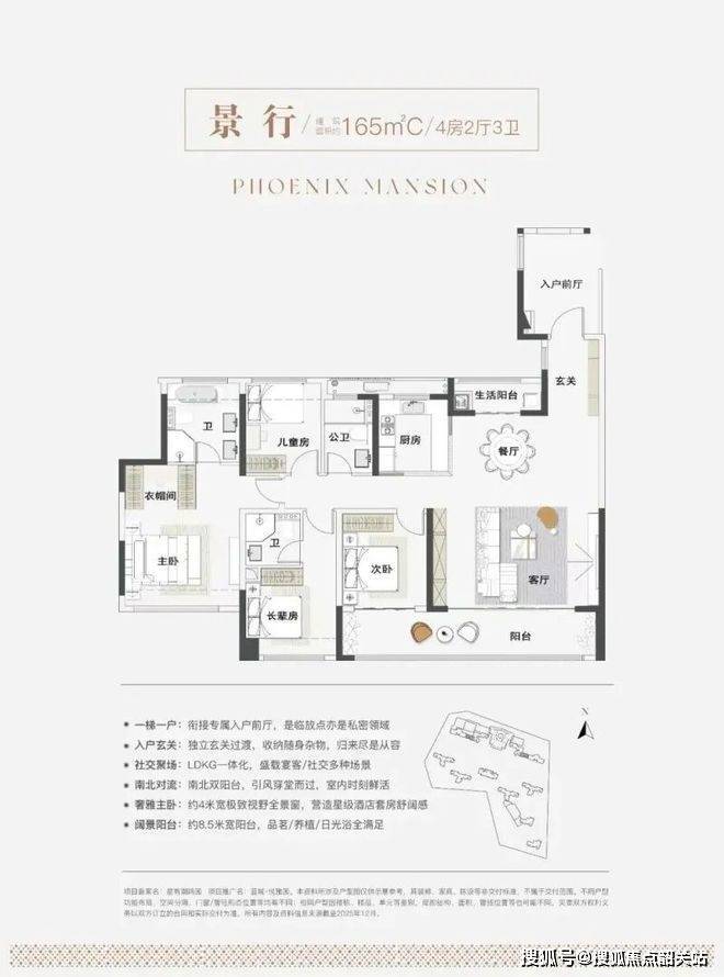 165㎡户型更适合进阶大家庭,双套房设计,8.7米宽大阳台加南北双阳台,动静分区合理,每一代人都有独立私密空间,又能共享家庭时光。整体户型注重极致使用率和功能性,阳台赠送多,飘窗设计放大室内尺度,实际居住感远超面积数据。客厅开阔,卧室奢阔,厨房动线合理,日常做饭、聚会、带娃都特别舒服。