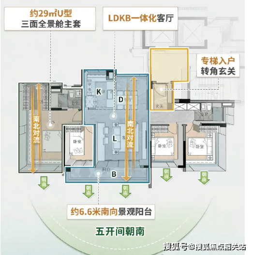 建面约87㎡一步到位四空间,作为中轴稀缺新规小户型产品,采用LDKB一体化布局,约5.2米开间客厅,X空间可随心规划使用,空间使用率大幅提升。该户型拥有约11.6米南向尺度,四开间朝南,搭配宽幕观景阳台,可臻享四季风光,居住舒适度极高。