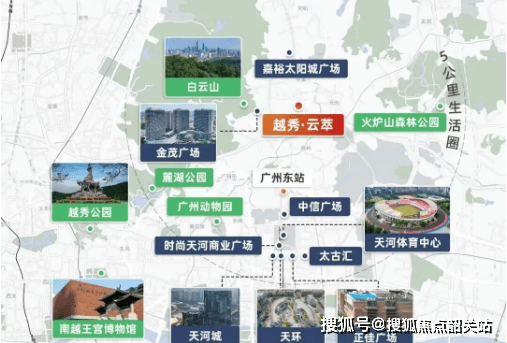 越秀·云萃坐落于白云区沙太路以西的衡器厂地块,处于广州中轴之上,地理位置得天独厚。从区域定位来看,项目地处天河与白云交界处,距离珠江新城仅5公里,一线衔接核心商务区,是白云区难得的近城优质地块。