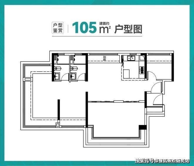 建面105㎡四房:四开间朝南,采光充足,适合首改客群;