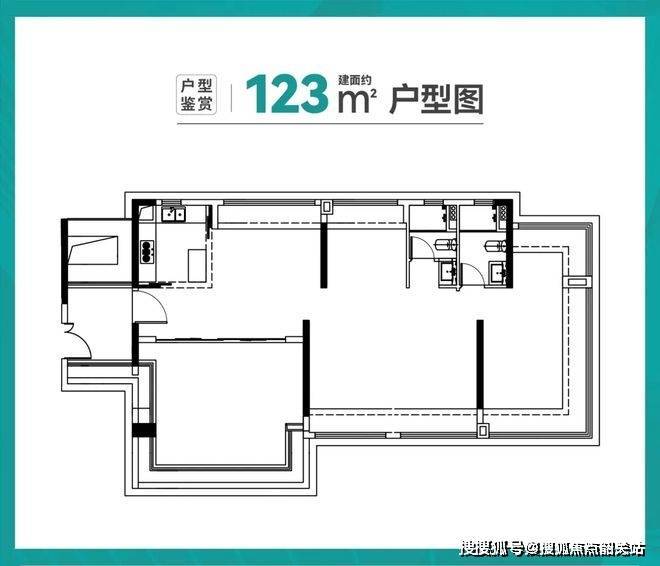 建面143㎡五房:双主卧套房,独立衣帽间,匹配高端改善需求。