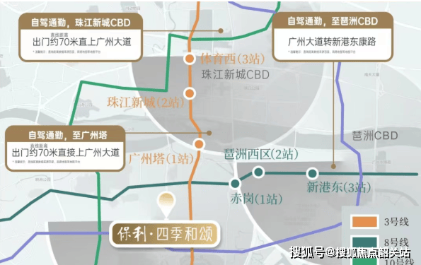 交通便捷高效:周边汇聚地铁3号线、8号线、10号线(在建)、11号线(在建)四线交汇,1站直达广州塔,2站抵达珠江新城,3站通达琶洲西区;地面路网发达,出门即上广州大道,快速连接体育西路、珠江新城、琶洲等核心商务区,早晚高峰通勤亦从容不迫。