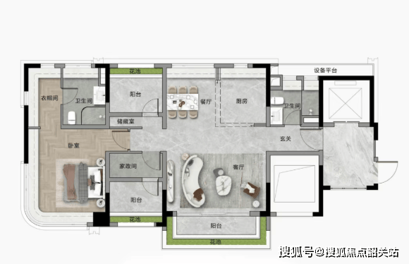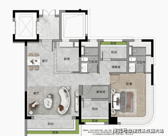 而约108-110㎡三房,则是片区极为稀缺的“低门槛上车”选择:带入户花园设计,空间使用率显著优于市场同类产品;约4.9米开间客厅+主卧270°飘窗,全屋采光面约12米,在紧凑面积内实现奢阔体验。