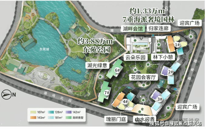 第五,6.4万方城芯湖居,海派奢境园林。项目超1/2土地打造7重海派奢境园林,内外联动形成6.4万方CBD湖居生态,40米恢弘门楼、双层花园会客厅、7000㎡湖畔会馆,周边4大城市公园环绕,打造了城芯难得的低密康养奢居大境。