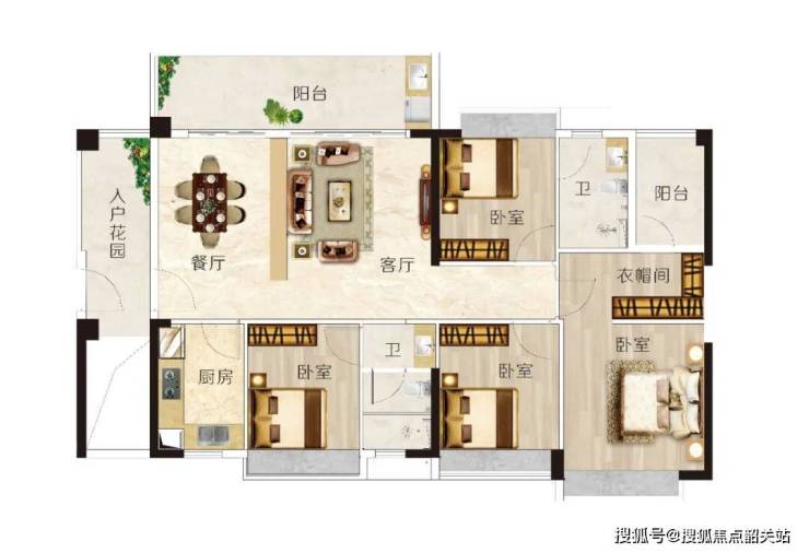 D 户型 137㎡四房,超大入户花园,三分离卫生间,主卧带尊奢衣帽间。E 户型 106㎡三房,阔绰双厅,超大宽面阳台,主卧带转角飘窗。F 户型 92㎡三房,U 型厨房,主卧带 270° 转角飘窗,空间舒适实用。