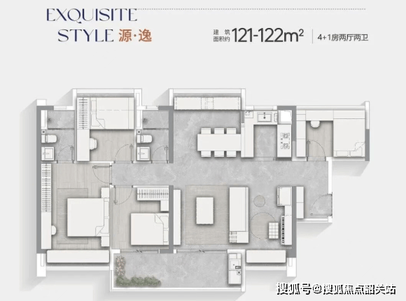 122㎡南北对流四房两卫:实现“4+1”空间布局,媲美四代住宅标准,总价240–260万,兼顾改善与投资价值。