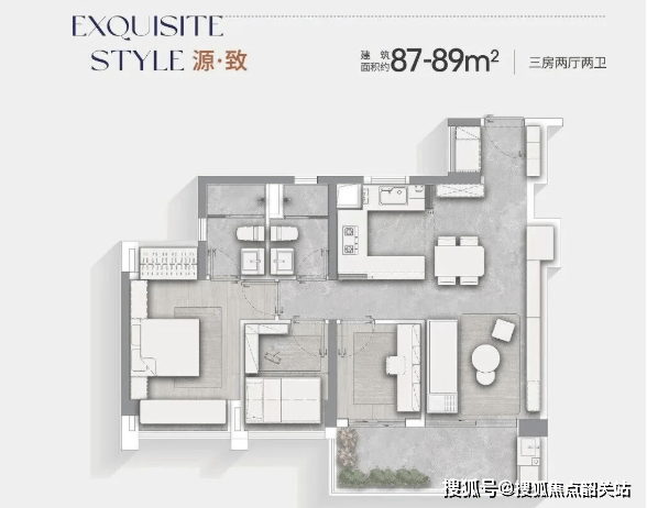 87㎡西南向三房两卫:总价155–160万,厨房空间超大,客厅采用可变式设计,灵活适配家庭成长需求;