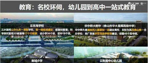 文体配套上,项目 3 公里范围内有斥资 12 亿由保利承建的三水新文化中心,囊括了图书馆、展览馆、科技馆等五大场馆,是片区的文化地标;北侧的三水体育中心体育场将服务于 2025 年全市运动会,此外,总投资约 9.8 亿元的三水足球体育中心也已落地云东海,2025 年已全面动工,预计 2027 年建成,未来可承办高水平足球赛事,业主在家门口就能感受体育赛事的激情。