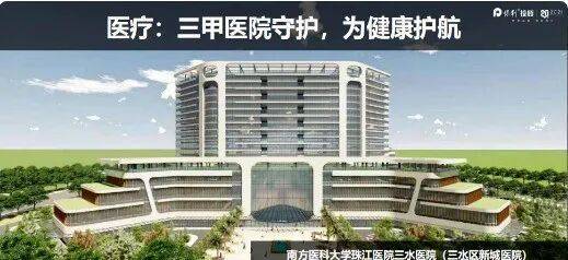 医疗配套方面,项目 1 公里内就有已投入运营的南方医科大学珠江医院三水医院新城院区,这是一所三甲综合医院,2025 年 3 月已正式开业,6 月住院部也已启用,规划床位 999 张,配备直升机坪,重点发展妇产科、心脑血管疾病等领域,还聘任了 16 名珠江医院学科带头人为特聘专家定期出诊,业主在家门口就能享受省级优质医疗服务。
