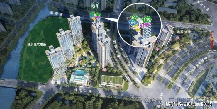 按照规划,项目商品房位于地块西侧,包括6栋层25-32层住宅,以T5风车型全南向户型规划布局。容积率3.4,计容建面9.86万㎡,得房率基本超100%,拥有1.8万㎡围合式大园林及1.5万㎡红线内外绿化与江景资源,致力打造成白鹅潭品质舒居标杆。