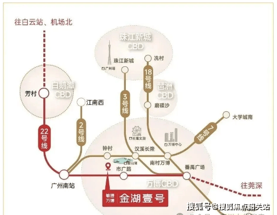 敏捷万博金湖壹号地处万博 CBD 关键位置,交通优势十分突出。项目靠近 22 号线与 26 号线交汇的市广路站,其中 22 号线作为 “地铁里的高铁”,时速达 160 公里,可快速连接广州南站、白鹅潭商圈、白云机场、番禺广场等核心区域,还能一站换乘 18 号线;规划中的 26 号线堪称 3 号线 “姐妹线”,换乘站点丰富,能直达体育西路、珠江新城、琶洲、金融城等核心产业与商圈带,无论是日常通勤还是跨区出行都极为便捷。同时,项目周边 “五纵五横” 立体交通网络完善,自驾前往万达广场、天河城、四海城等商业体仅需短时间,轻松融入广州主城生活圈。