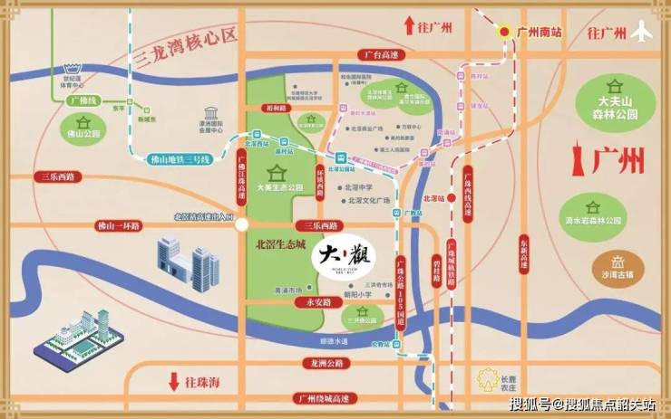 佛山三龙湾高端创新集聚区位于广佛接壤区域,与广州南站仅一河之隔;
