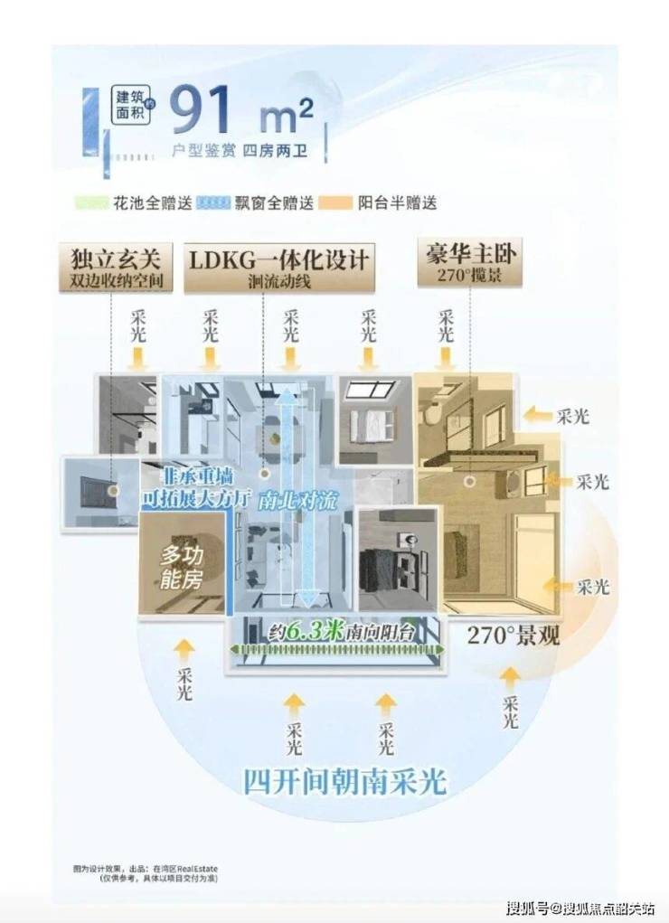 作为保利怡璟湾的楼王户型,91 平方米四房代表了项目产品力的巅峰。其最大的亮点在于主卧带有 270°环幕全景窗,这一设计在广州同价位产品中极为罕见。
