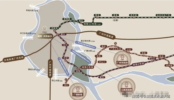 越秀·天悦金沙拥有便捷的交通网络,家楼下即是公交总站,多条线路快速接驳地铁浔峰岗站。地铁6号线和12号线交汇换乘站,让居民能够轻松到达荔湾、越秀、天河、大学城等核心区域。尽管项目属于私密性较高的改善型湖山景楼盘,距离地铁不算近,但通过自驾车或楼下公交接驳车,出行依然十分便利。这种多重立体交通设计,不仅方便了日常通勤,也促进了高端精英圈层的形成。