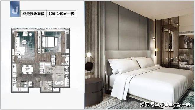 尊贵行政套房(106 - 140㎡一房): 宽敞的空间可进行多样化的布局,既可打造温馨的起居空间,也可设置独立的办公区域,满足个性化需求。