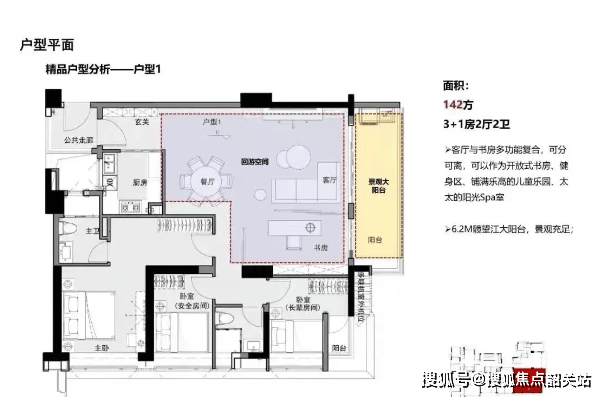 保利阅江台提供了多种户型选择,包括低区(5-18层)两梯五户设计的121-143㎡三至四房户型,以及高区(20-30层)两梯两户设计的208-210㎡大平层四房产品。目前,项目仍有少量内部保留单位推出,主要户型集中在低区的121㎡北向三房、142㎡南向四房和139㎡西南向四房,以及高区的208㎡大平层四房户型。每个户型都拥有良好的视野,能够一览广州塔的城市景观。