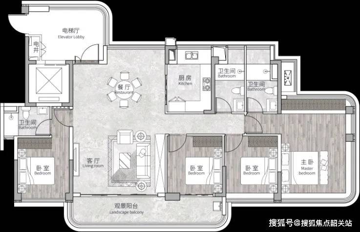 多代同堂:188㎡四房,四套房设计,私密性强。