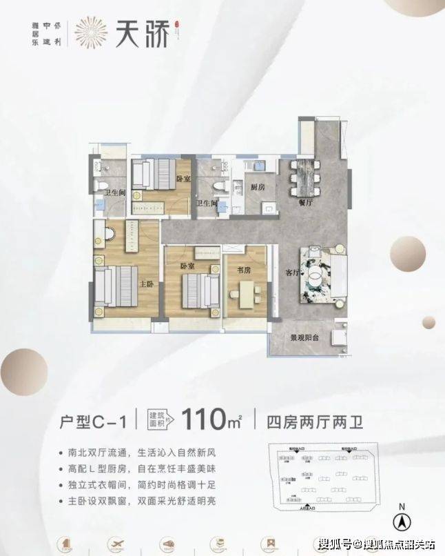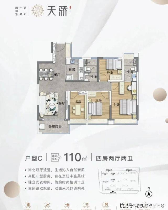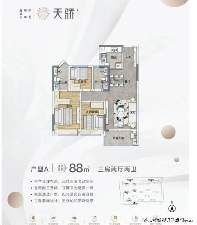 户型设计以实用为主。主力户型为 88 - 110㎡三至四房,方正实用,部分户型带景观阳台或飘窗,空间布局合理,满足不同家庭需求。不过,由于板楼设计及风雨连廊计入公摊,部分户型得房率相对较低,像 110㎡户型公摊较大,实际使用面积可能低于预期。但整体的户型设计注重采光通风和居住舒适度,全南向设计与南北通透的格局,提升了居住体验。