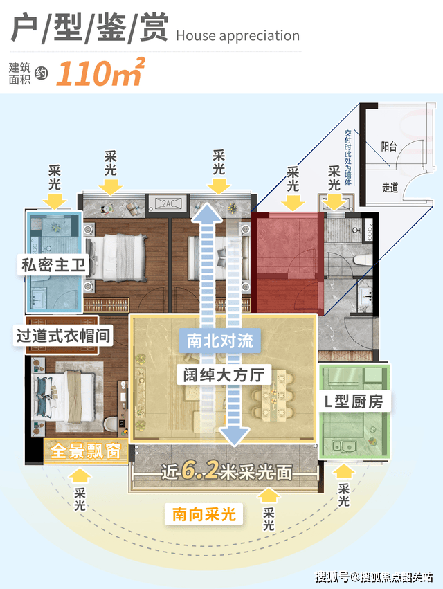 80-110㎡全户型长阳台设计:紧凑实用,适合年轻家庭或单身人士,南北通透,最大化利用空间。
