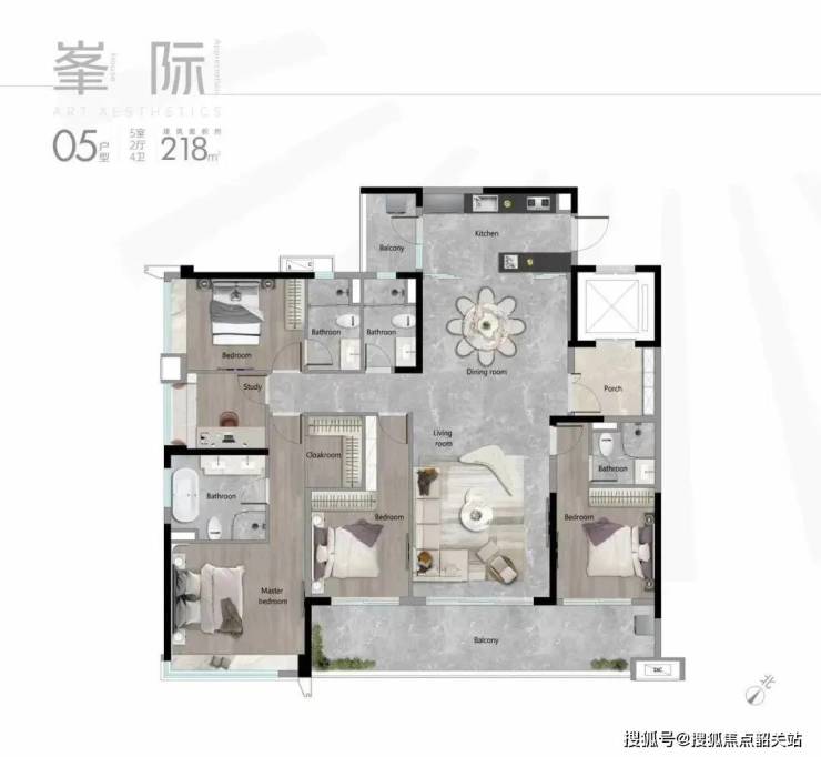 保利天汇的218平米五房户型设计非常宽敞豪华,具有多个亮点。首先,该户型拥有10米景观阳台,提供了优美的视野和充足的采光。