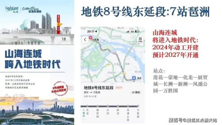 距离项目2.5公里处有莲花山站,佛莞肇城际已经开通运营了,3 站到长隆万博,4 站到广州南站。另外佛莞深城轨琶洲支线还在建设中,(2 站到大学城,3 站到琶洲)以及广中珠澳城轨(规划中)和8号线地铁的东延段(预计2027年通车)。