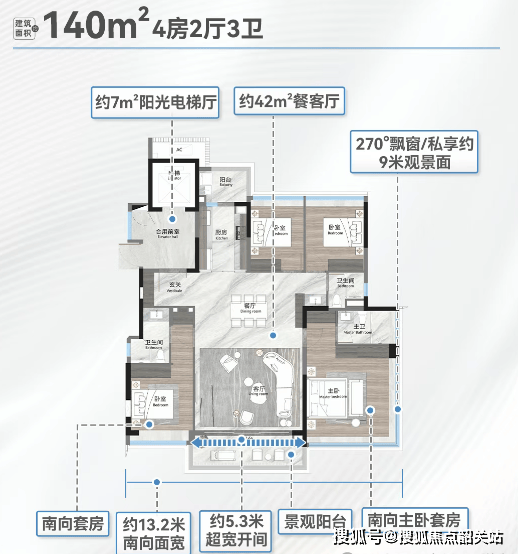 越秀观樾推出多种户型,从140㎡到250㎡不等,满足不同家庭的需求。特别值得一提的是,这些户型采用了板楼设计,每户都享有中轴园林景观,实现了2梯2户的豪华配置。尤其是【山趣】建面约190㎡的大平层,拥有全屋超高窗地比,以及主卧270度IMAX级环幕视野,极大地提升了居住体验。