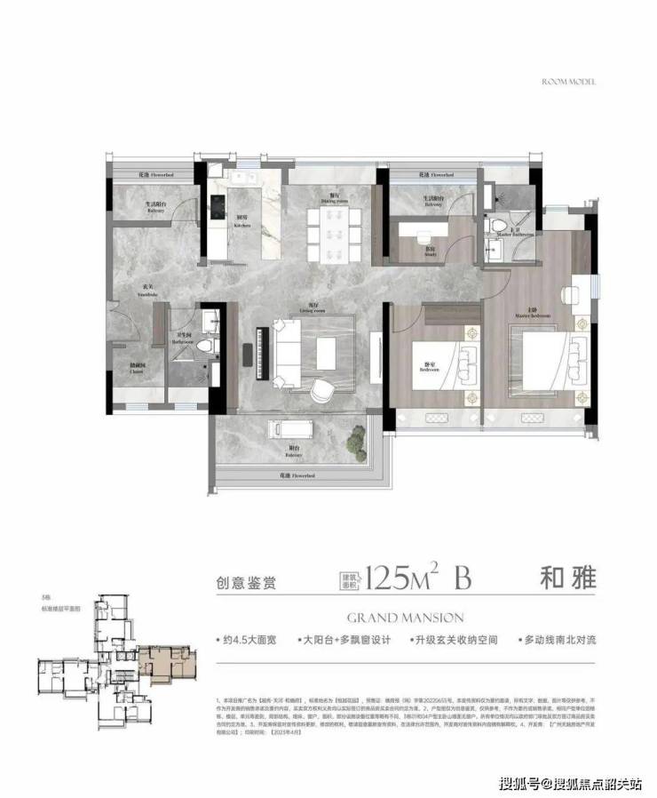 例如面宽,整个户型拉大了南向开间面,南北对流的同时,实现4.5面的南向面宽。