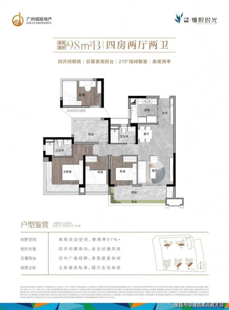 首推户型 | 建面约98㎡|B 4房2厅2卫